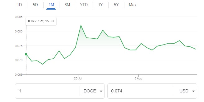 Dogecoin (DOGE) has gone past the $0.075 mark in the trading results of the last two days to peak at $0.077. The sideways movement in market price for Dogecoin (DOGE has been the norm in recent days for the meme coin. A whale sold off about $5 million worth of Dogecoin on 10th August 2023 and this could dampen the expectation of a price surge.